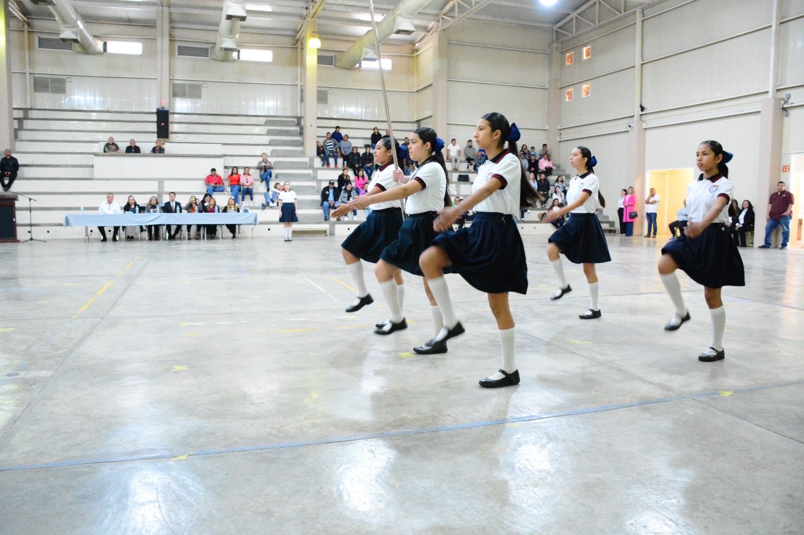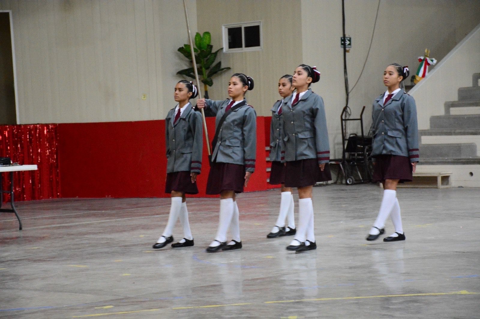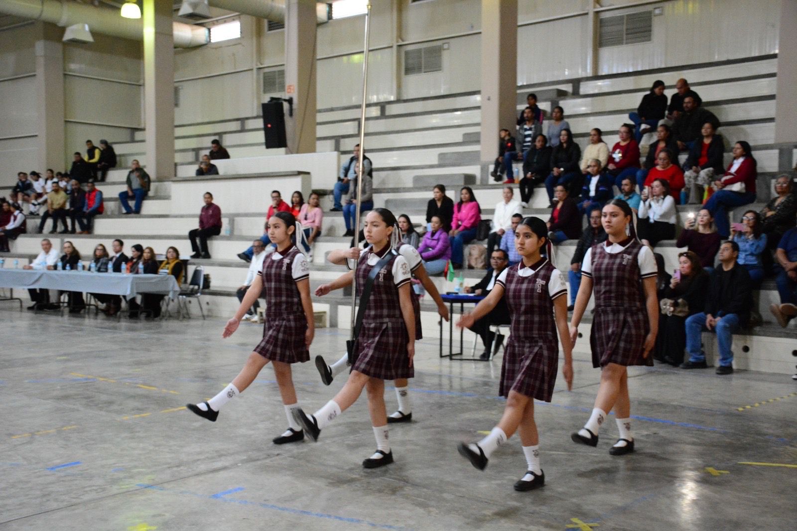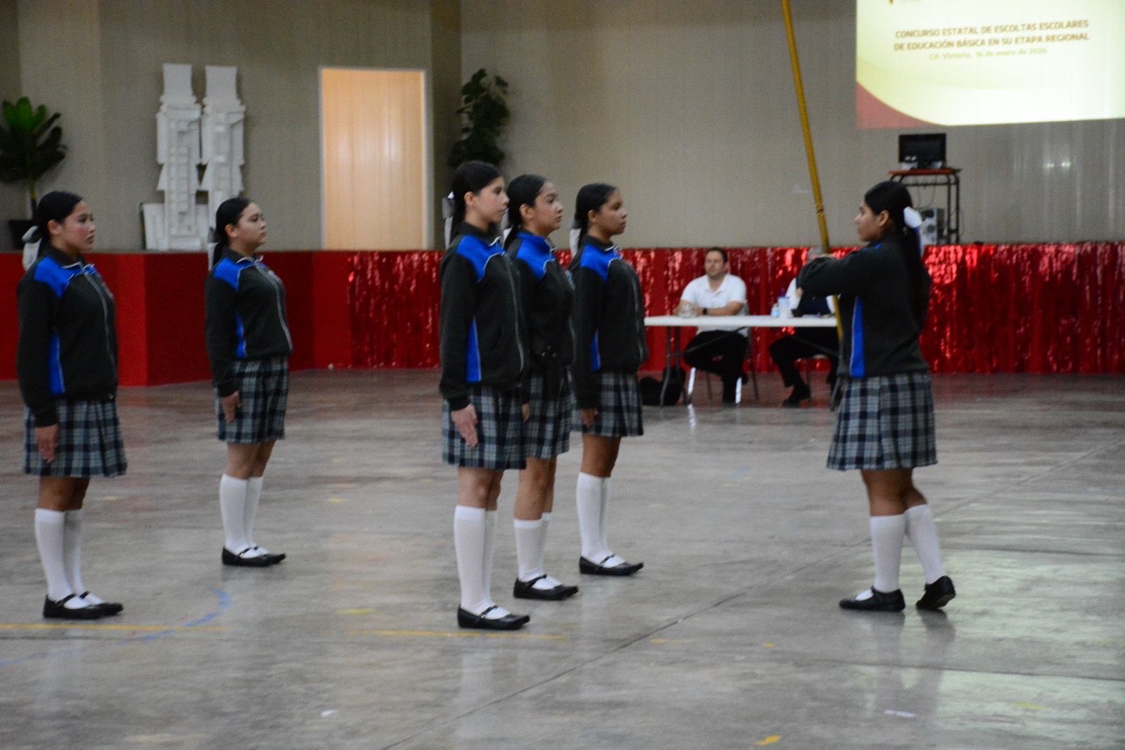 Señaló que esta etapa se desarrolló con la participación de seis instituciones educativas de la región, con 48 alumnas, alumnos y figuras educativas, quienes demostraron su capacidad y disciplina para ejecutar con precisión, sincronía y firmeza los diversos movimientos o ejercicios como parte de una escolta de bandera.