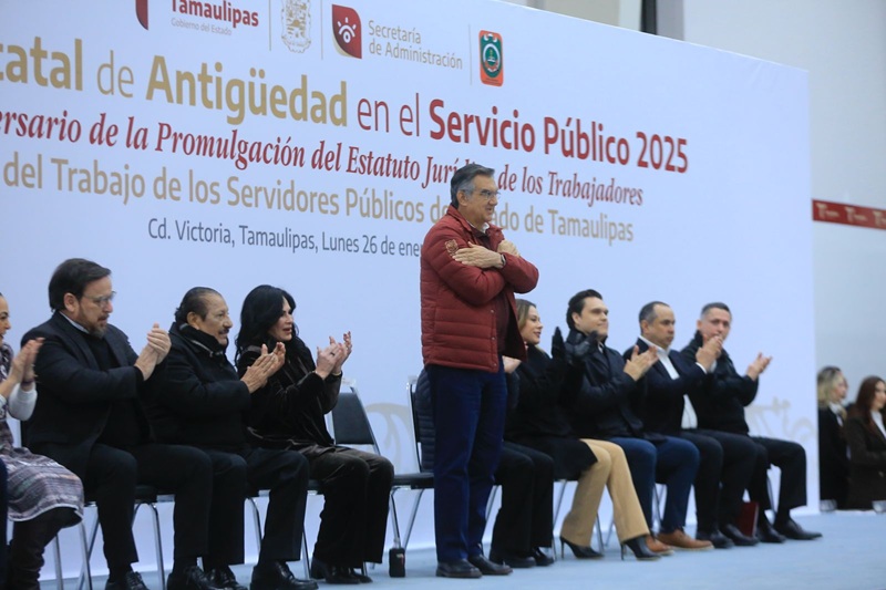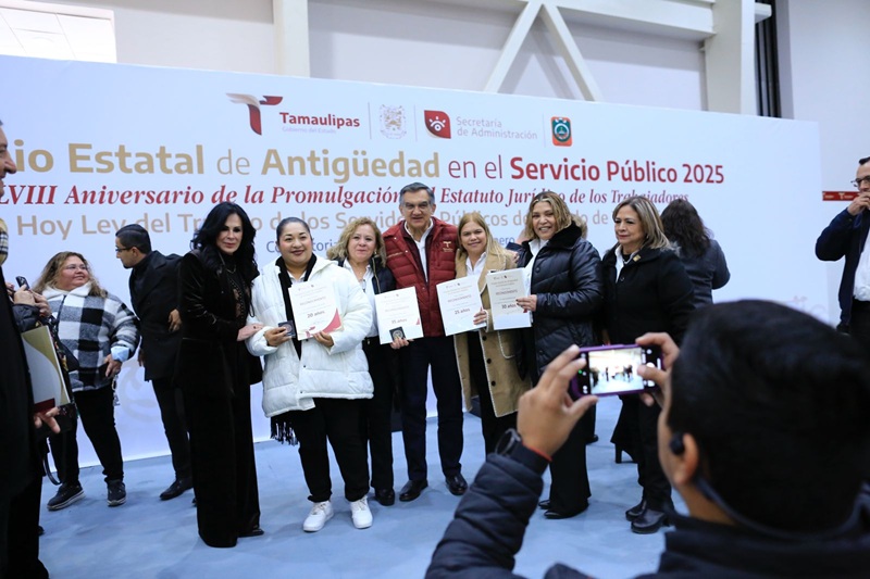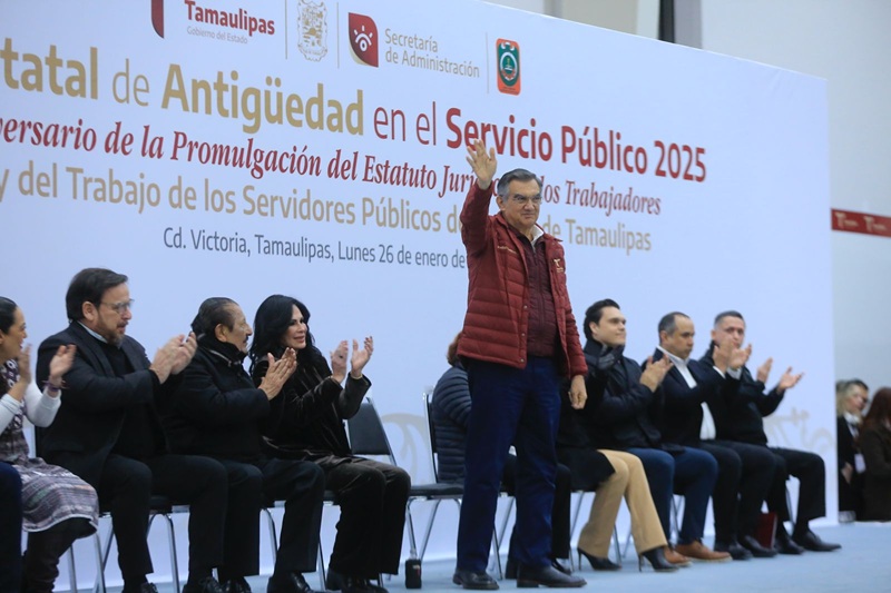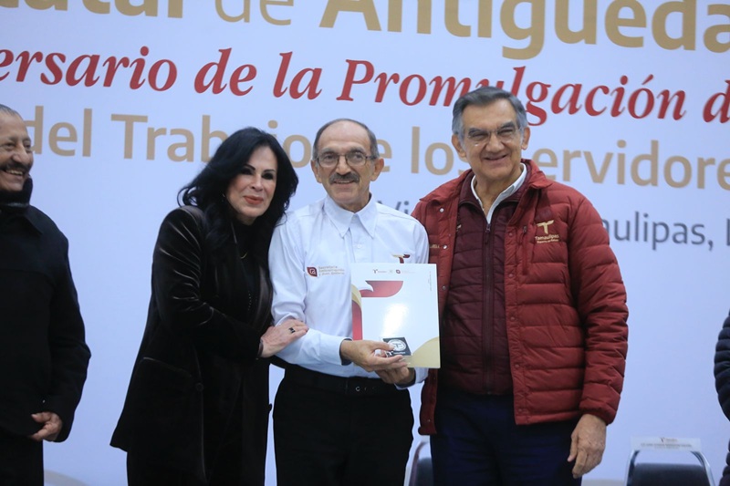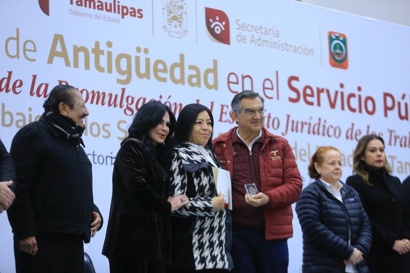 En esta ceremonia, recibieron de manera especial su reconocimiento por 50 años de servicio: Gerardo Salinas Trejo, de la Secretaría de Finanzas, y David González Delgado, de la Secretaría de Administración, mientras que Gerarda Pelcastre, de la Secretaría de Administración, fue galardonada por cumplir 55 años de servicio en el Gobierno de Tamaulipas.