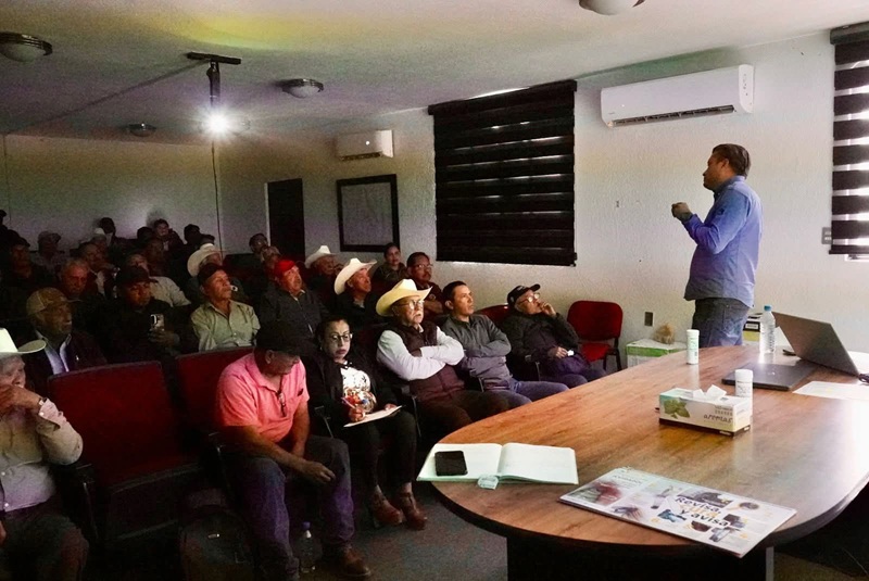 HIDALGO, TAMPS. Con el objetivo de fortalecer las acciones de prevención y avanzar en la erradicación del gusano barrenador del ganado, el subsecretario de Desarrollo Pecuario y Forestal, Cuauhtémoc Amaya García, sostuvo un diálogo directo con productoras y productores del municipio de Hidalgo, a quienes brindó información detallada sobre la identificación de esta plaga y las medidas que se implementan para su control.