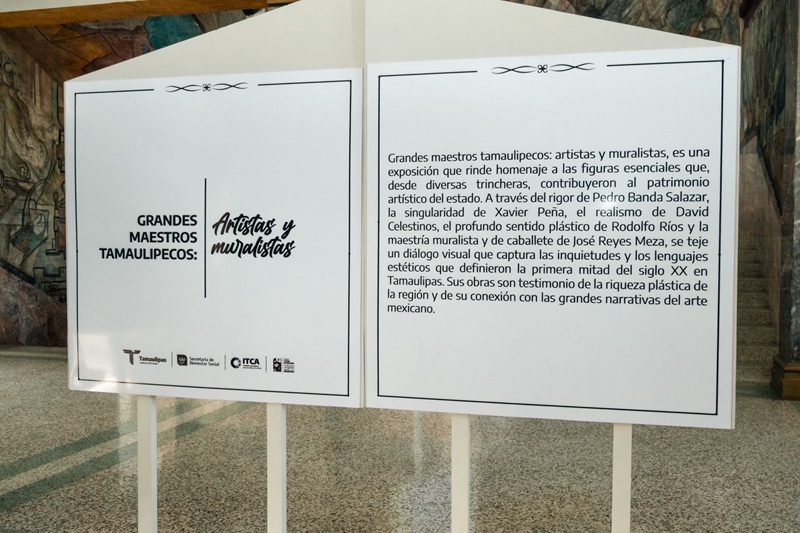 Por su parte la exposición ‘Grandes Maestros Tamaulipecos‘, difunde las aportaciones estéticas, históricas e identitarias de 5 destacados artistas de nuestro estado: Ramón García Zurita, José Reyes Meza, David Celestinos, Pedro Banda y Alfonso X Peña, destacando su trayectoria en el movimiento muralista de México.