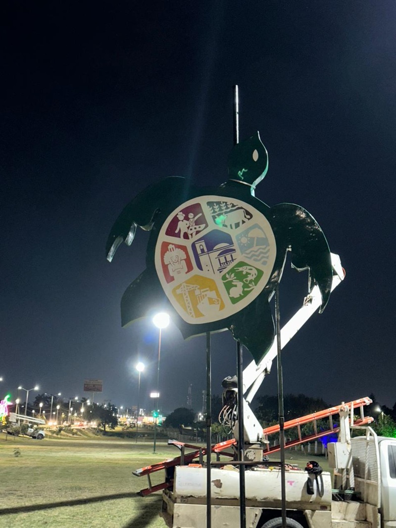 En esta ocasión, personal de la Dirección de Servicios Públicos llevó a cabo la instalación de la marca ciudad de la tortuga en la entrada del bulevar Allende, un símbolo que refuerza el sentido de pertenencia y proyecta con orgullo la identidad altamirense.
