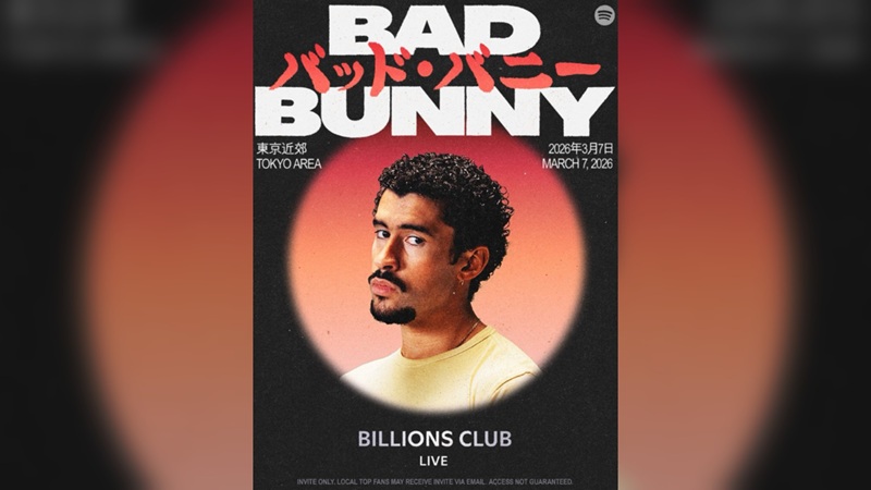Según anunció la plataforma de contenido de música digital, Spotify, Benito Antonio Martínez Ocasio será el artista principal del evento anual Billions Club Live, que este año se llevará a cabo en Tokio, Japón, el sábado 7 de marzo de 2026.