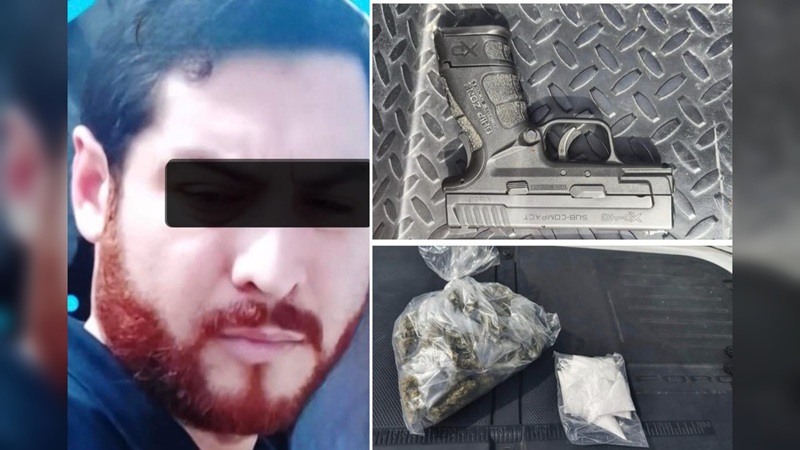 La captura se realizó en la colonia Quinta Real, luego de que los agentes detectaron un vehículo que circulaba a exceso de velocidad. Tras marcarle el alto y realizar una inspección preventiva, localizaron en el interior de la unidad un arma corta y hierba verde con características propias de la marihuana.