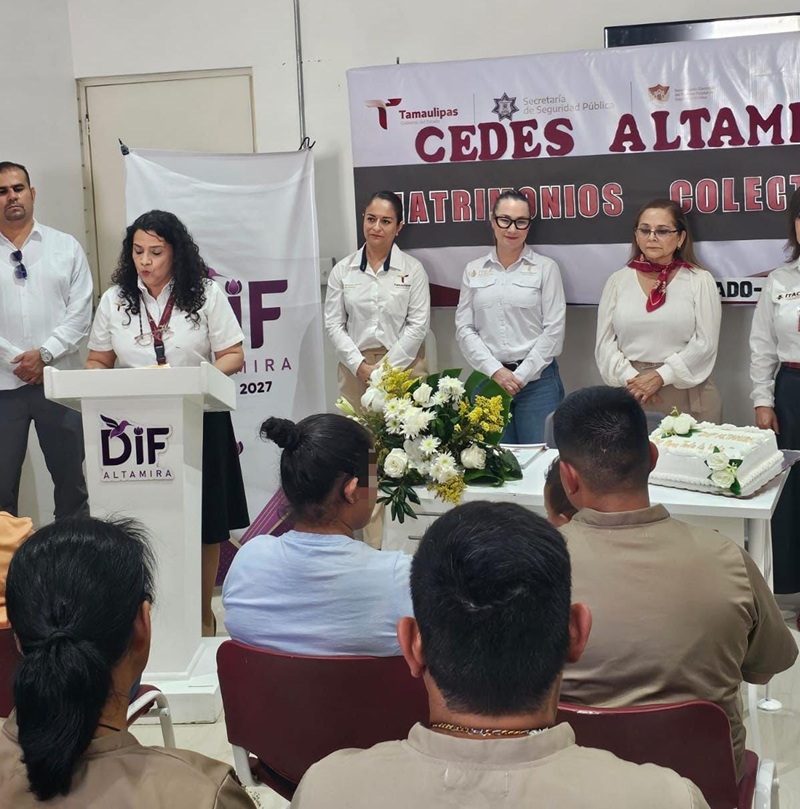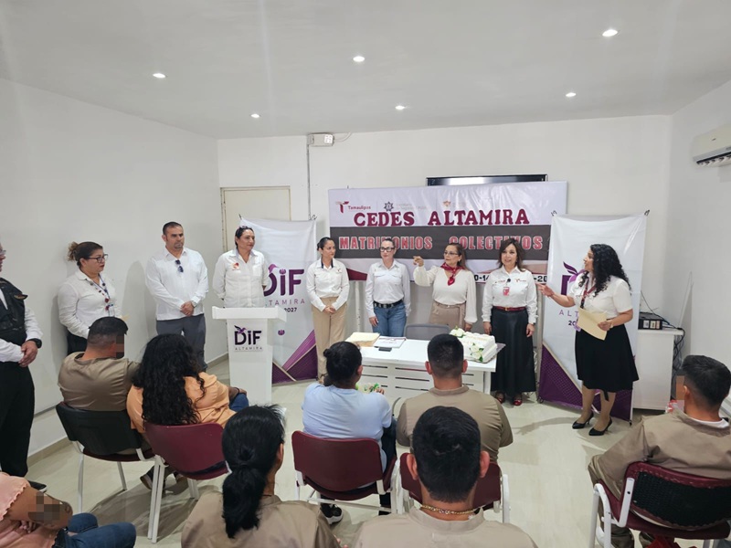 ALTAMIRA, TAMPS. Gracias a la colaboración entre la Secretaría de Seguridad Pública de Tamaulipas (SSPT) y el Sistema DIF Altamira, personas privadas de la libertad (PPLs) en el Centro de Ejecución de Sanciones (CEDES) de este municipio formalizaron su unión en una ceremonia de matrimonios colectivos.