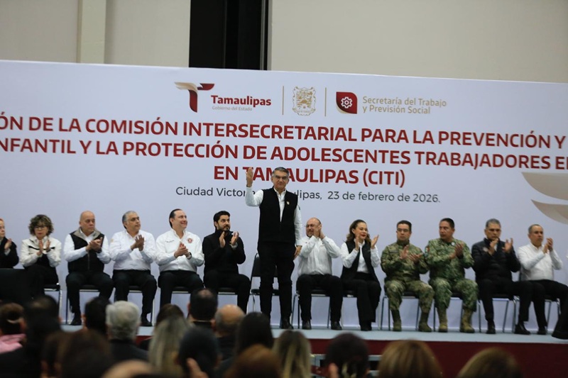 Durante la ceremonia cívica de honores en el Polyforum de esta capital, el gobernador, junto con el secretario del Trabajo, Gerardo Illoldi, y el titular de la Oficina de la Representación Federal del Trabajo en Tamaulipas, Iván Karim Rocha Picazo, firmó el acuerdo que da marco legal y sustento a esta comisión, que representa un mecanismo permanente de coordinación entre dependencias estatales, sectores sociales y la iniciativa privada para atender de manera integral el fenómeno del trabajo infantil, desde un enfoque de derechos humanos y bajo el principio del interés superior de la niñez.