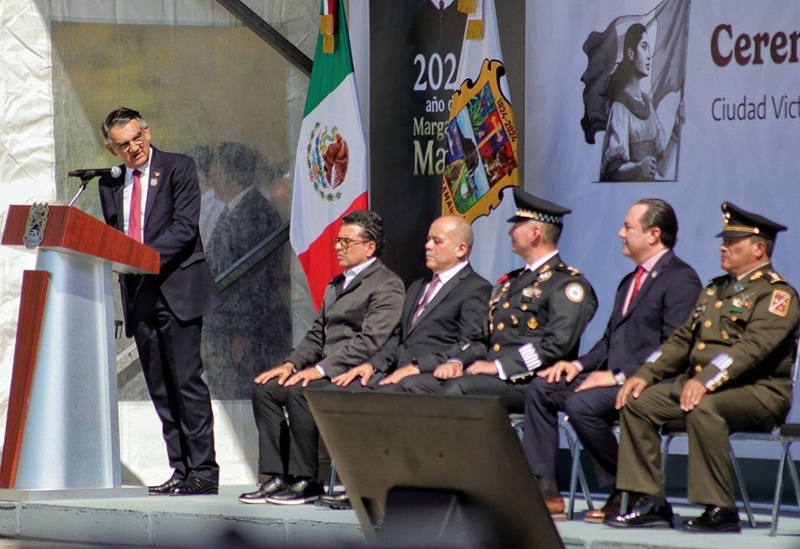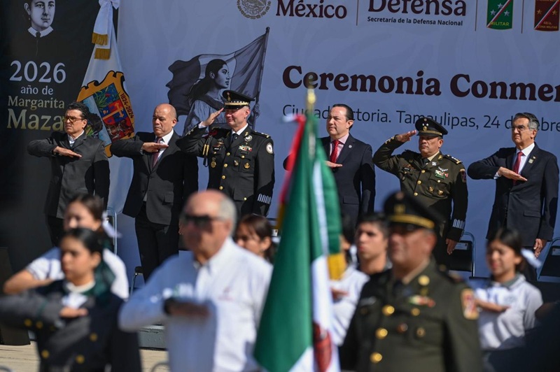 En el evento cívico, estuvieron presentes el Contraalmirante Francisco Figuereo Corona, Comandante del Sector Naval La Pesca; el General Jesús Amparán Hernández, coordinador de la Guardia Nacional de Tamaulipas; Tania Gisela Contreras López, Presidenta del Supremo Tribunal de Justicia; y los secretarios de Educación, Miguel Ángel Valdez, y Carlos Arturo Pancardo de Seguridad Pública.