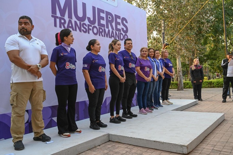 A la ejercitación aeróbica se sumaron la secretaria de Bienestar, Lorena Zapata; Herlinda Molina, delegada estatal de Atención a la Violencia Familiar y de Género; Ana Pérez Paz, por el Instituto de la Defensoría Pública, integrantes del Cabildo y empleadas del Ayuntamiento.