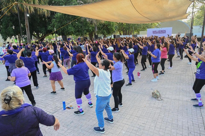 La activación física, al ritmo de música y coreografías, fue para celebrar el ‘Día Internacional de la Mujer’ y se llevó a cabo en la explanada del Paseo Méndez con la asistencia de cientos de mujeres que donaron artículos de aseo personal para internas en el CEDES Victoria.