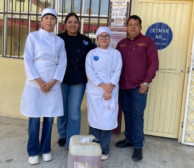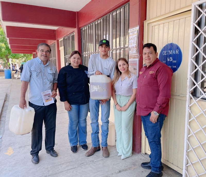 Como parte de la campaña de recolección de Aceite Vegetal Usado (AVU), personal del área de Cultura del Agua acudió al Centro de Estudios Tecnológicos del Mar Número 43 para realizar el acopio de este residuo que fue reunido por alumnos de la especialidad de ‘Preparación de Alimentos’.