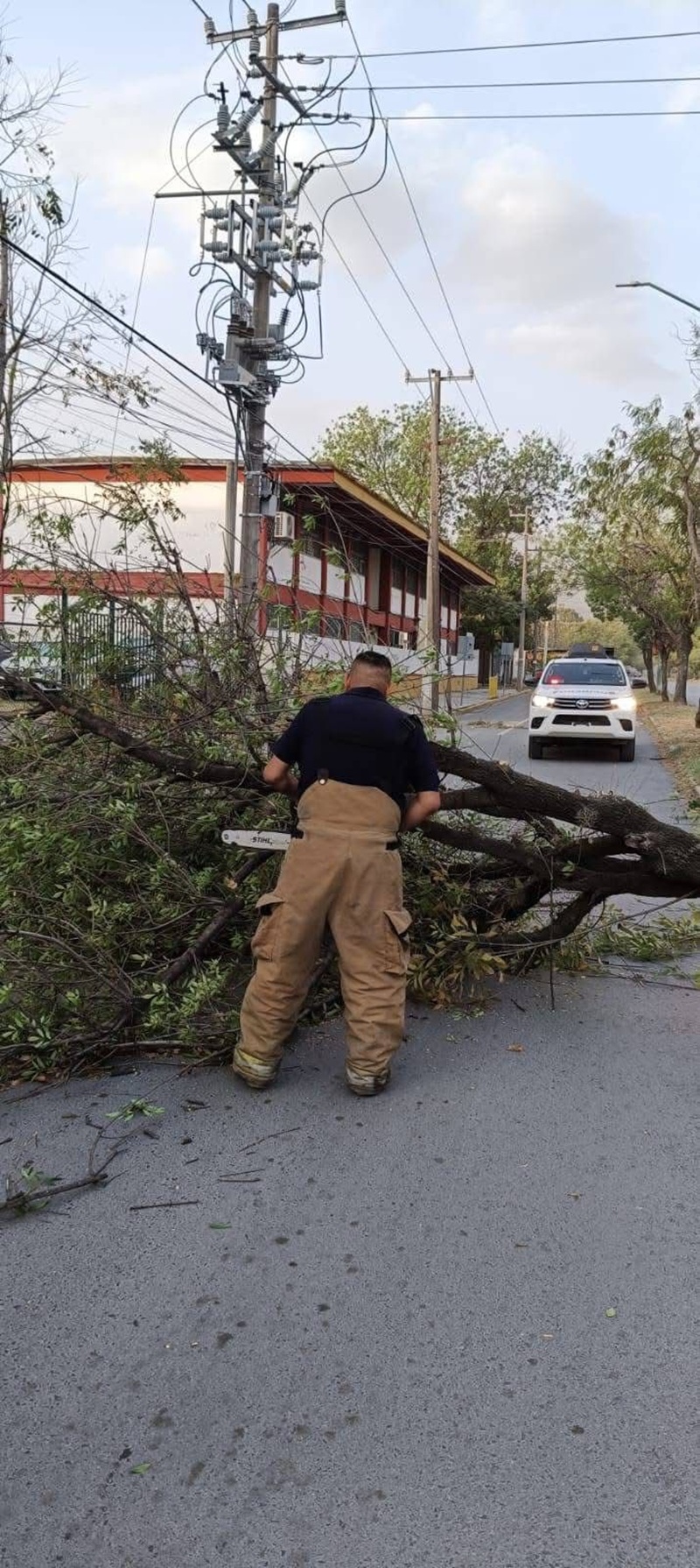 CIUDAD VICTORIA, TAMPS. Personal de Servicios Públicos y de la Coordinación Protección Civil del gobierno de Victoria desplegaron un operativo de limpieza y atención a reportes ciudadanos derivados de los fuertes vientos registrados la mañana de este lunes.