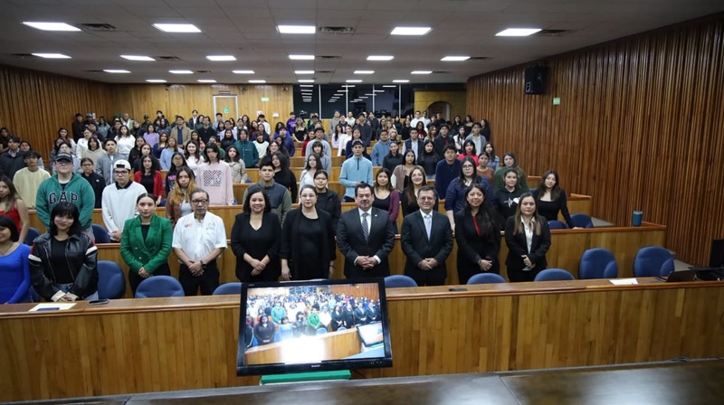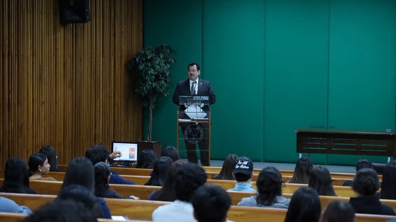 Durante su mensaje, en el Auditorio del Centro de Excelencia destacó que las actividades académicas y de actualización profesional son fundamentales para que la comunidad estudiantil adquiera conocimientos y experiencias que le permitan enfrentar los retos del ejercicio profesional en un entorno globalizado.