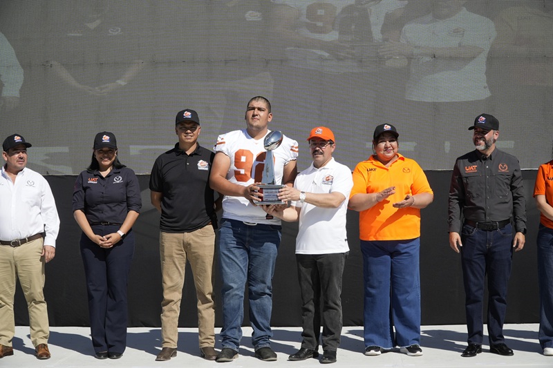 En una fiesta deportiva que tuvo como marco el Estadio Universitario “Prof. Eugenio Alvizo Porras”, Dámaso Anaya encabezó la ceremonia en la que hizo entrega de trofeos a los mejores jugadores de la temporada 2025 y dio la patada de kick off en el centro de la cancha con la presencia de los equipos participantes.