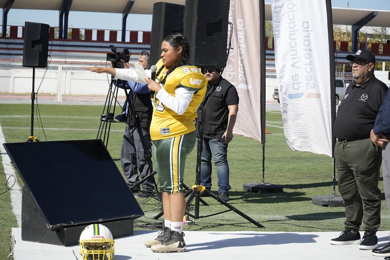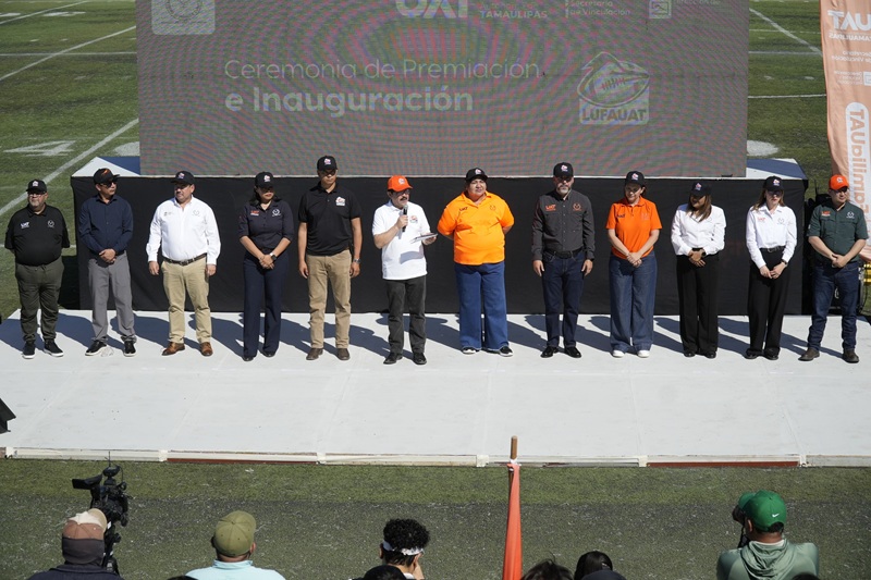 CIUDAD VICTORIA, TAMPS. Reafirmando su compromiso con el deporte estudiantil, el rector Dámaso Anaya Alvarado, dio la patada inicial y declaró inaugurada la Temporada 2026 Categoría Intermedia de la Liga Universitaria de Futbol Americano de la UAT (LUFAUAT).