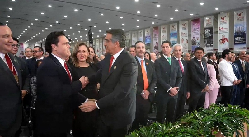Junto a diputados de la 66 legislatura, el presidente de la JUGOB arribó a las instalaciones del Polyforum, donde se dieron cita para escuchar el mensaje a 4 años de Gobierno.