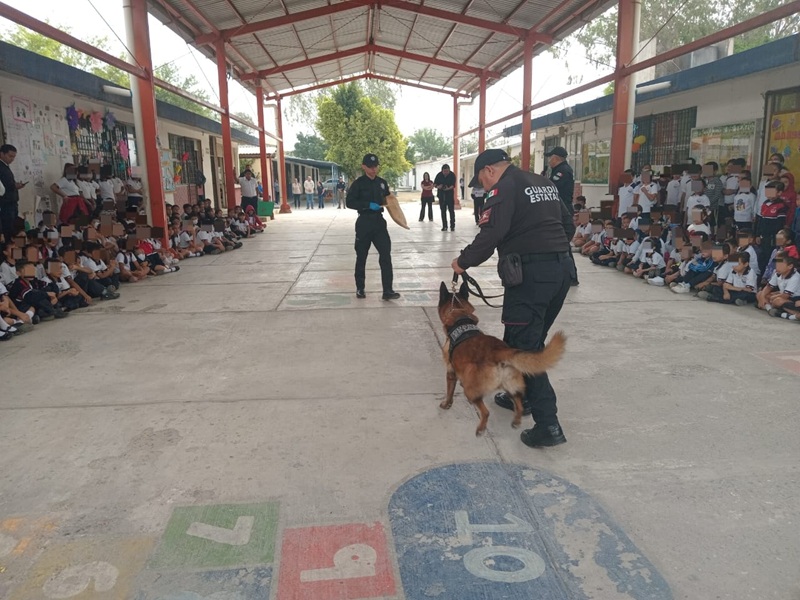 CIUDAD VICTORIA, TAMPS. Como parte de las acciones de proximidad realizadas por el Agrupamiento Canino de la Guardia Estatal, se llevó a cabo una actividad de convivencia y demostración en la Escuela Primaria “Francisco Márquez”.