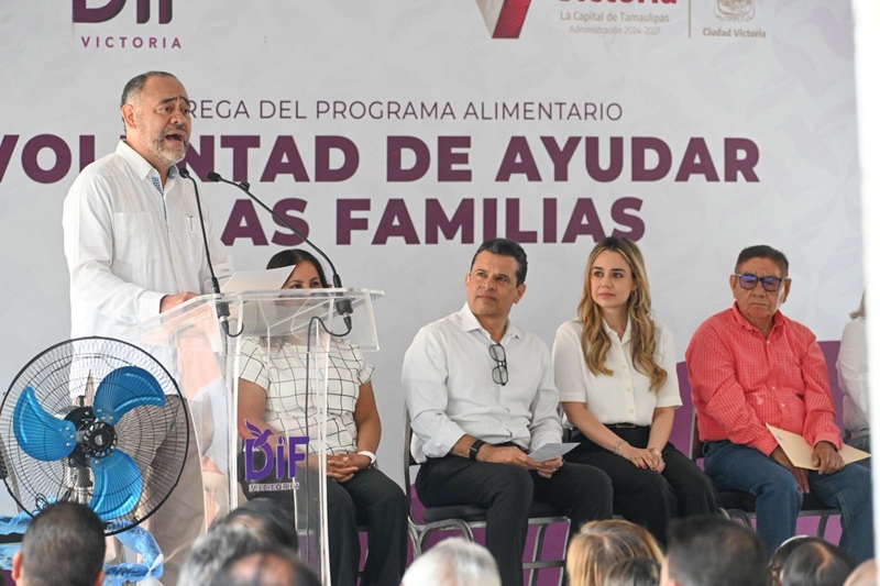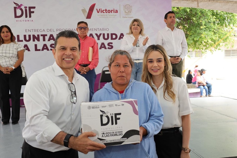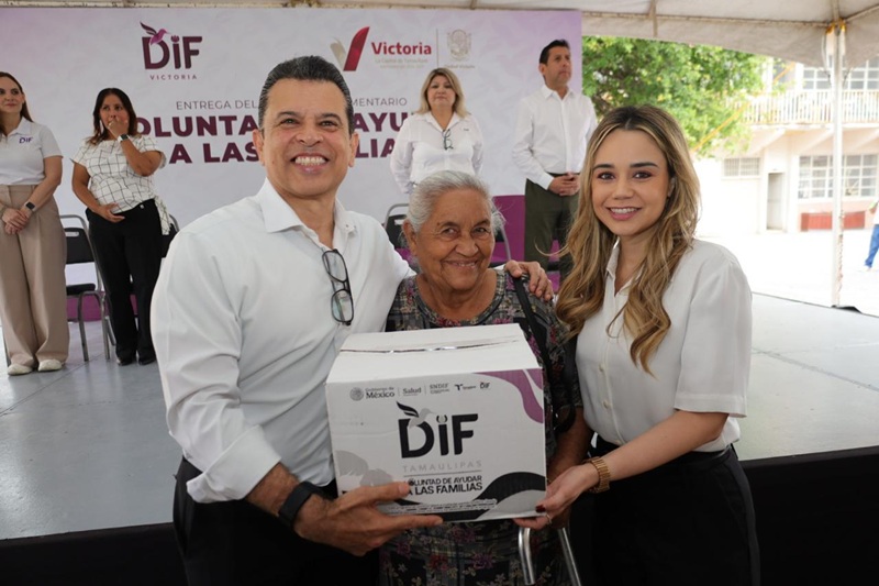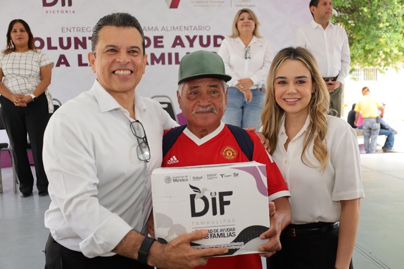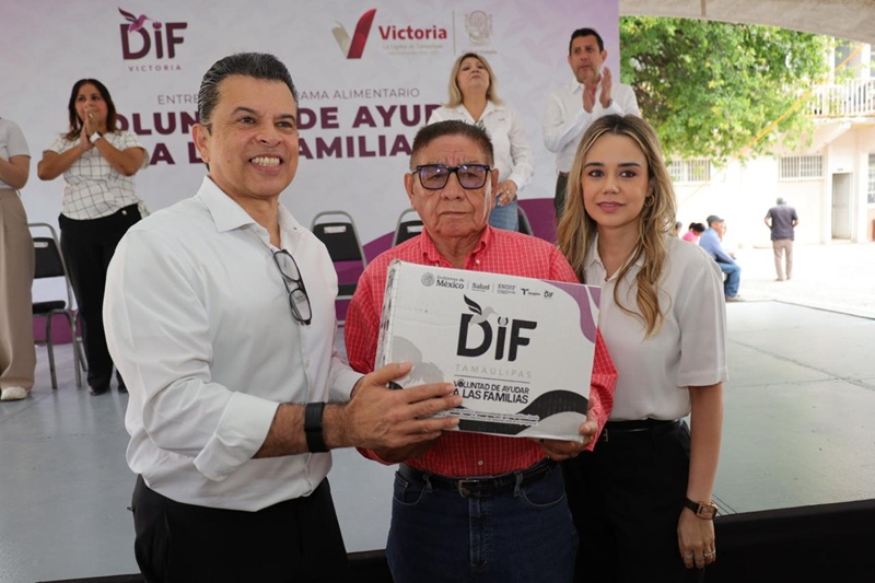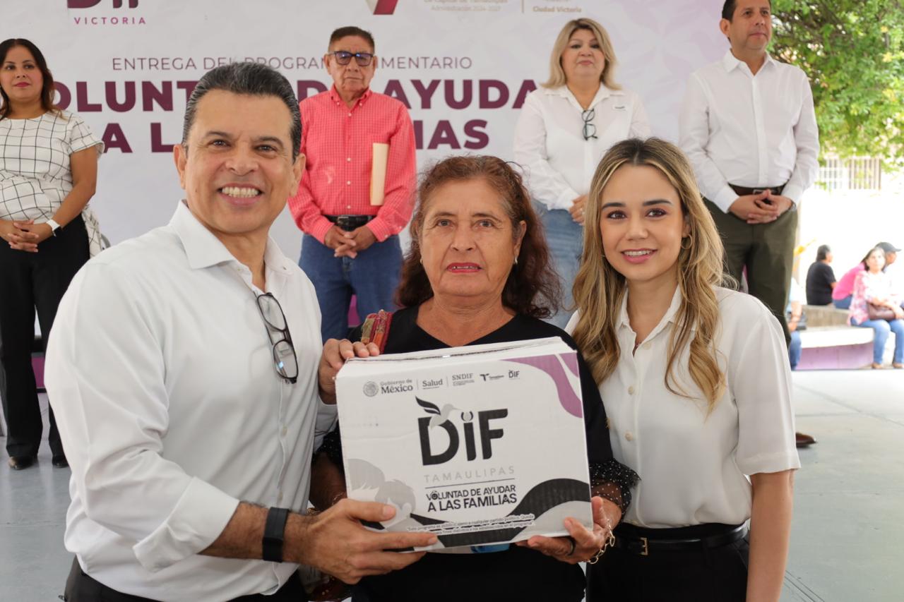 CIUDAD VICTORIA, TAMPS. Para fortalecer la alimentación de grupos de atención prioritaria, el alcalde Lalo Gattás Báez y la presidenta del DIF Victoria Lucy de Gattás, encabezaron la entrega de 3 mil insumos alimentarios que se distribuyen en la zona urbana y rural de la Capital.