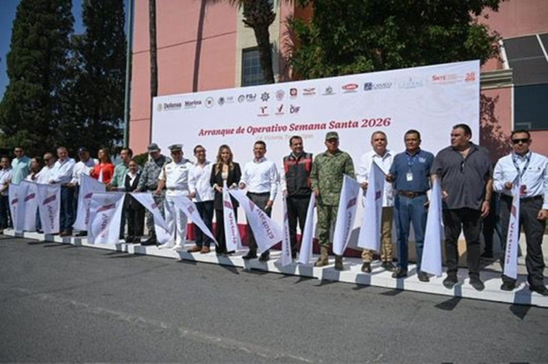 En el arranque del operativo “Semana Santa 2026” participaron representantes de la SSP, 77 Batallón de Infantería, Guardia Nacional, FGJT, FGR, Sector Naval, CRUM, Mesa de Seguridad y cámaras empresariales y asociaciones; CANACO, CMIC y Asociación de Hoteleros.