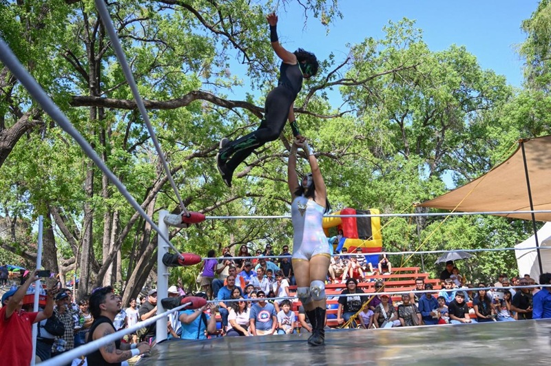 “Hagamos de Victoria un atractivo turístico para la diversión y convivencia familiar”, invitó Gattás Báez a mujeres, hombres, jóvenes y niños que llenaron la pista de baile y graderío para disfrutar de llaves y lances aéreos de los gladiadores enmascarados.
