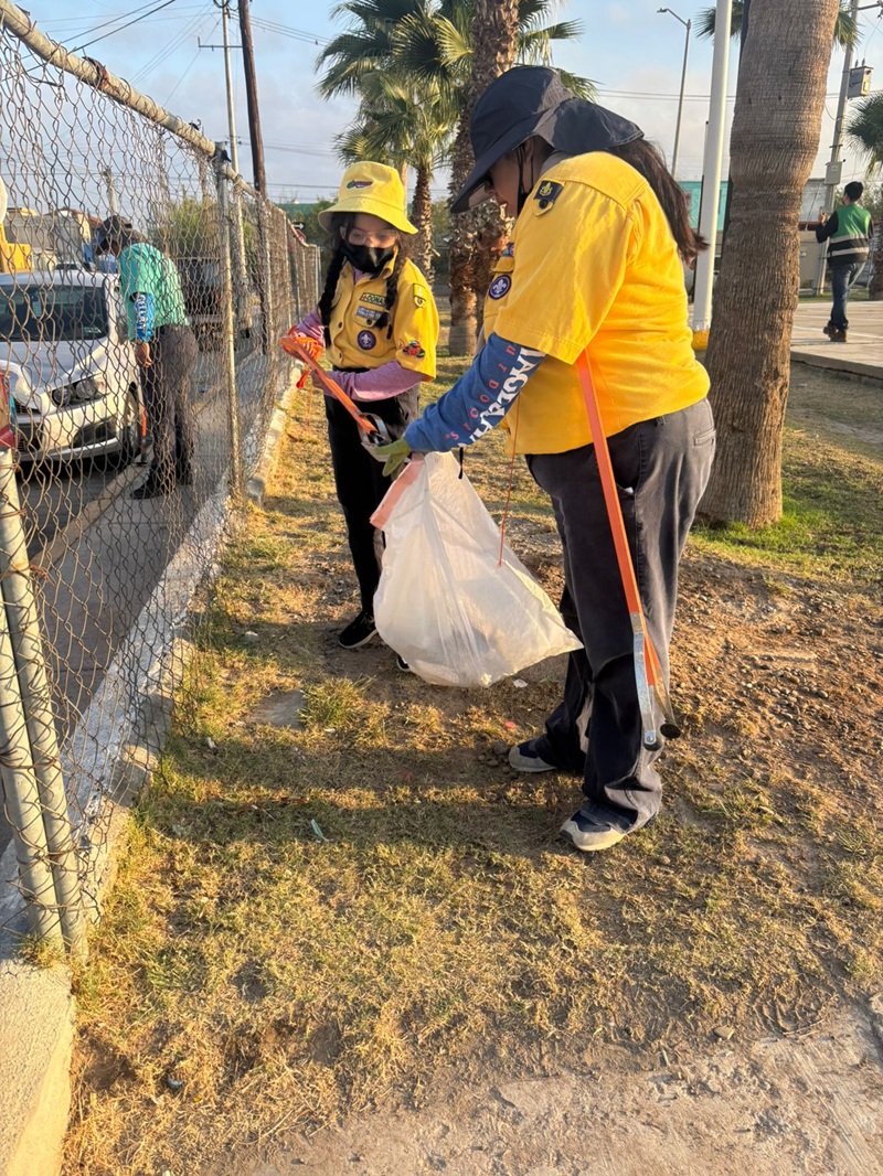 NUEVO LAREDO, TAMPS. Como parte de las acciones permanentes para el cuidado del entorno urbano, la Coordinación General de Gestión Ambiental del Gobierno Municipal llevó a cabo una jornada de limpieza en la colonia La Joya, con la participación de jóvenes de servicio social y el respaldo de integrantes del grupo Scout Grupo 1 Solaris Nuevo Laredo.