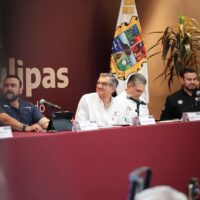 En la rueda de prensa el uno de Tamaulipas AVA, se hizo acompañar del Secretario de Seguridad Pública, Mtro. Carlos Arturo Pancardo Escudero; Secretario de Turismo, Benjamín Hernández Rodríguez y del Titular del Secretariado Ejecutivo del Sistema Estatal de Seguridad Pública (SESESP), Mtro. Willy Zúñiga Castillo.