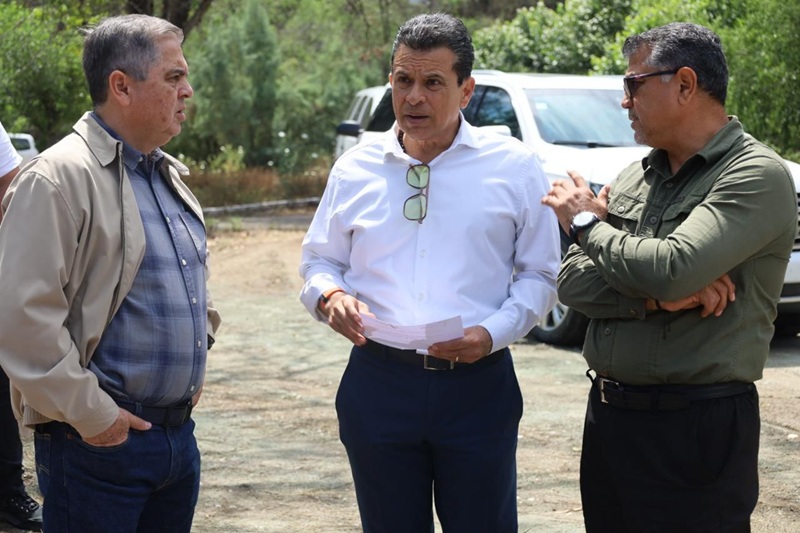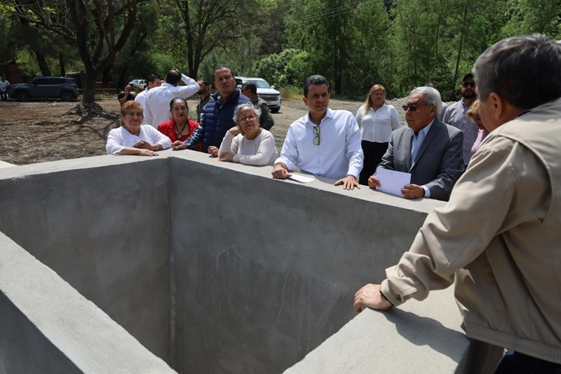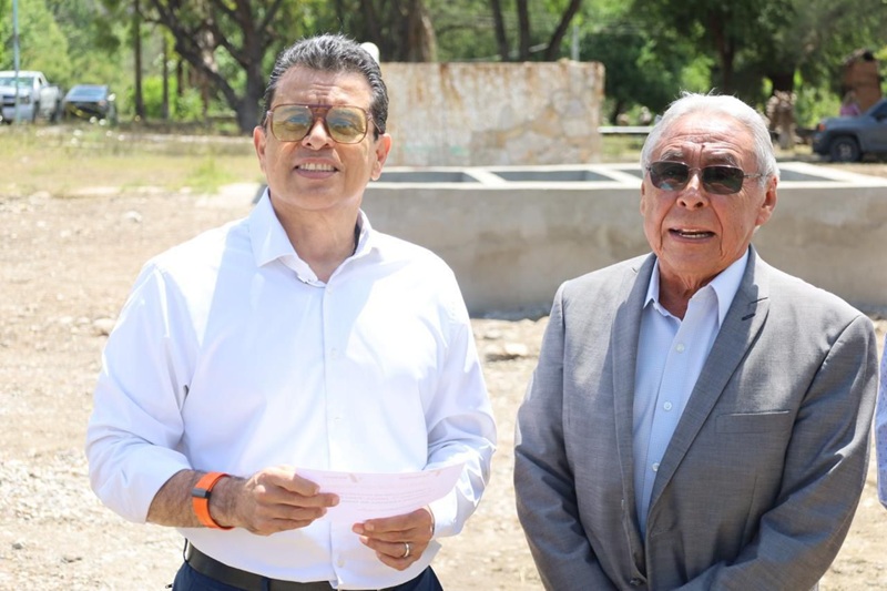 En compañía del gerente de la Comisión Municipal de Agua Potable y Alcantarillado (COMAPA), Fernando García Fuentes, y el secretario de Obras Públicas del Municipio, Eusebio Alfaro Reyna, recorrió la cimentación de la obra hídrica que beneficiará a 146,314 ciudadanos.