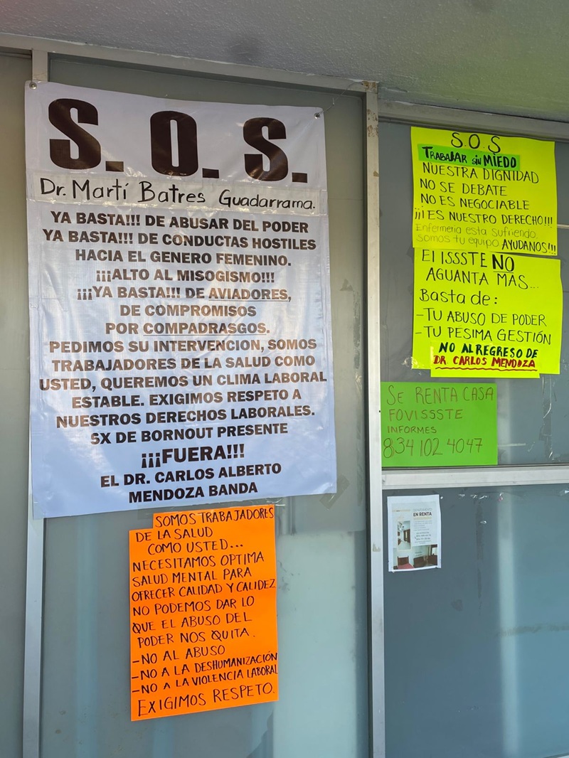 CIUDAD VICTORIA, TAMPS. Con un llamado al director general del Instituto de Seguridad y Servicios Sociales de los Trabajadores del Estado (ISSSTE), Martí Batres Guadarrama, la base trabajadora de la Clínica de esta Capital sigue trabajando bajo protesta.