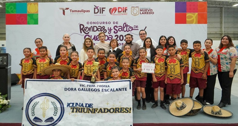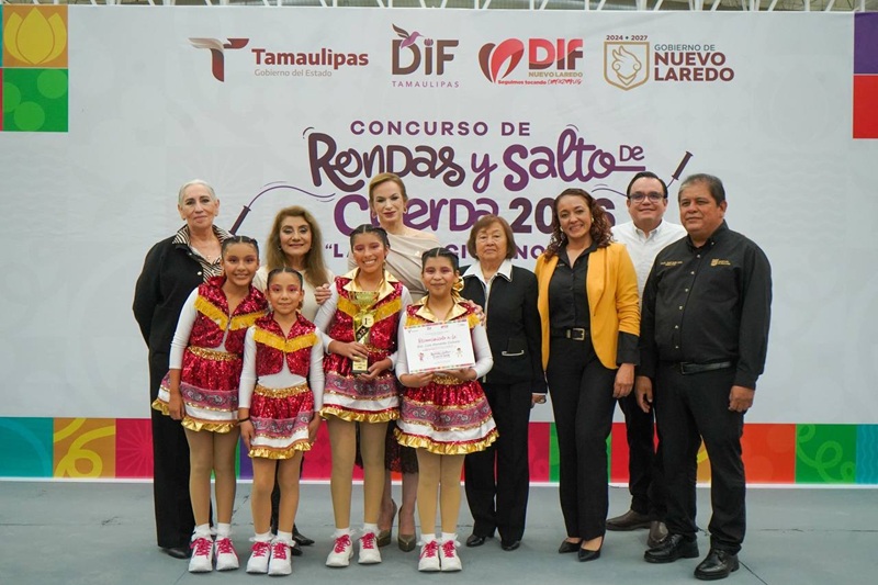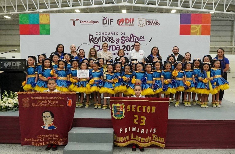 NUEVO LAREDO, TAMPS. Con una destacada participación de estudiantes de nivel primaria, se llevó a cabo la etapa municipal del Concurso Estatal de Rondas y Salto de Cuerda 2026, iniciativa promovida por el Sistema DIF Tamaulipas, encabezado por la doctora María de Villarreal, con el propósito de preservar las tradiciones y fomentar la sana convivencia entre la niñez.