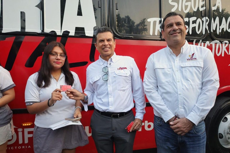 CIUDAD VICTORIA, TAMPS. El alcalde de Victoria Eduardo Gattás Báez, entregó las primeras tarjetas de transporte escolar, de las 2 mil que serán distribuidas a través del ‘Programa Lalobús’, para el traslado gratuito de estudiantes a instituciones de nivel medio superior.