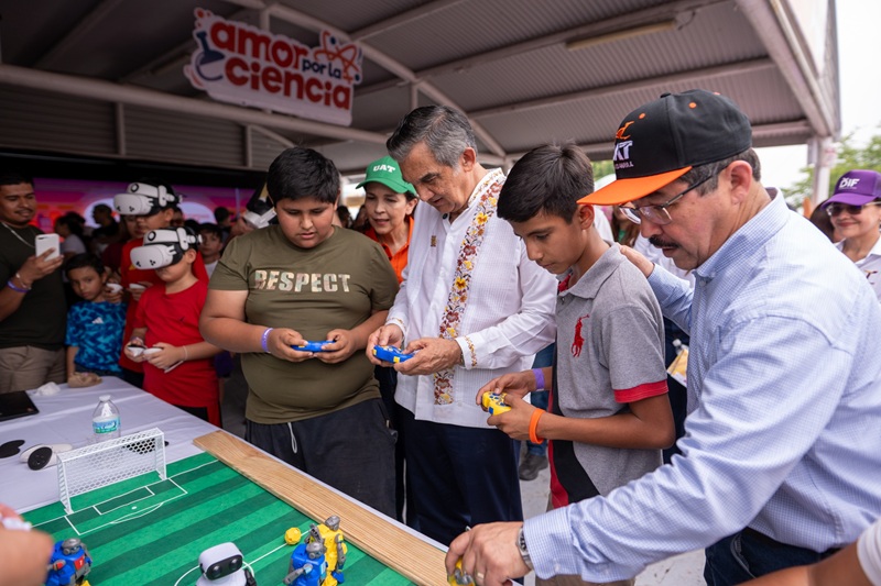 Cientos de niños, jóvenes y adultos disfrutaron de una calurosa tarde mitigada por las paletitas heladas, las botargas, los juegos, pero también el aprendizaje llevado por la UAT, donde los pequeños interactuaron con la realidad virtual y con la ciencia básica.