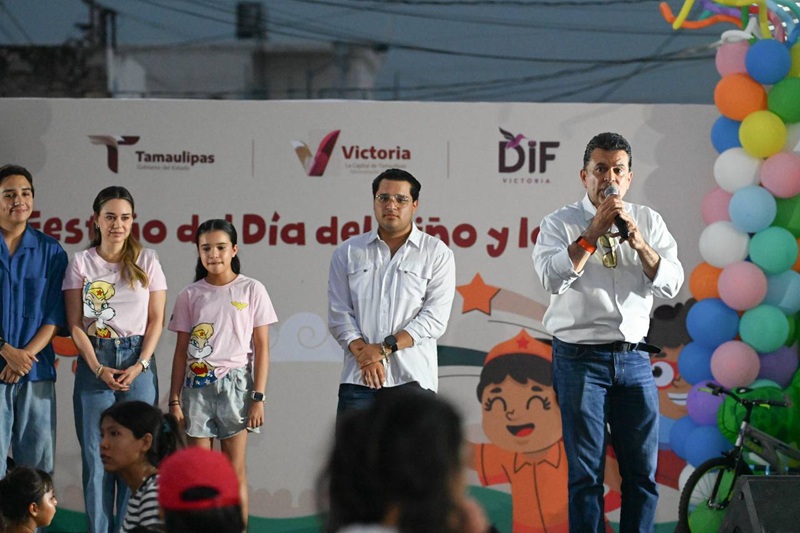 CIUDAD VICTORIA, TAMPS. En familia y gran ambiente de alegría y diversión, el alcalde Victoria Eduardo Gattás Báez y la presidenta del DIF Lucy de Gattás festejaron este domingo a la niñez victorense como parte de las actividades del próximo ‘Día del Niño’.