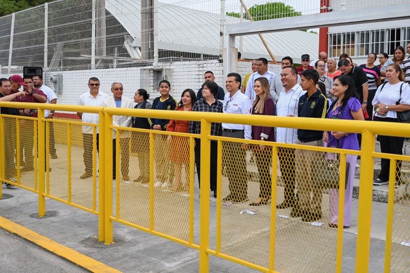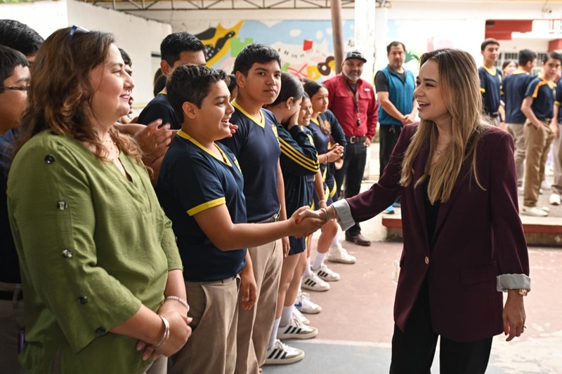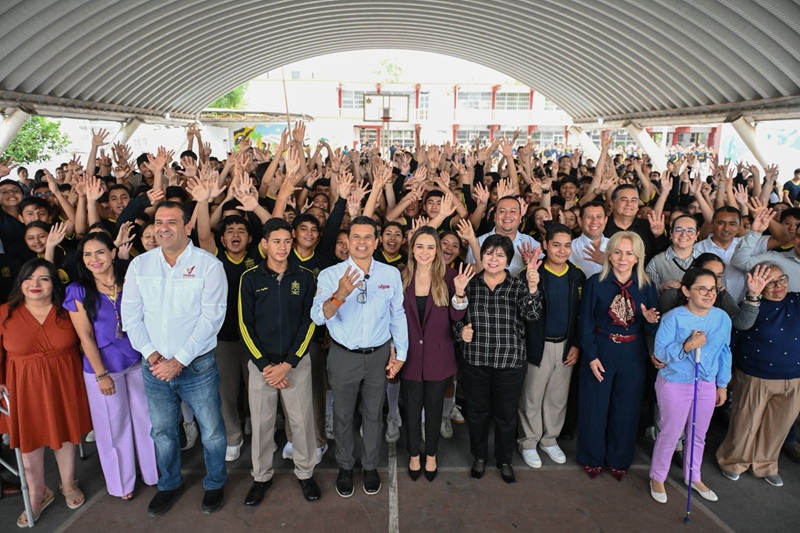 “Muchas gracias por la construcción de un acceso más seguro, un cruce peatonal mejor señalizado, banquetas más funcionales y la instalación de una cisterna que garantiza agua para todos”, dijo la directora Mtra. Narda Marisela de la Garza y el alumno Leonardo Aguilar Rosario.